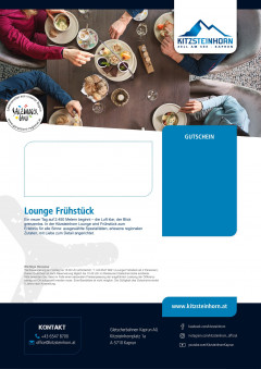 In der Kitzsteinhorn Lounge im Restaurant Gletschermühle wird Frühstück zum Erlebnis für alle Sinne: ausgewählte Spezialitäten, erlesene regionale Zutaten, mit Liebe zum Detail angerichtet. Das Lounge Frühstück inkludiert: